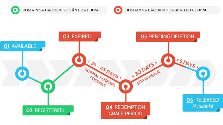 Trạng thái xử lý thu hồi: Sau 25 ngày kể từ ngày hết hạn, tên miền sẽ chuyển sang trạng thái xử lý thu hồi, trạng thái này kéo dài tối đa 15 ngày và chủ thể không thể gia hạn tên miền. Tên miền sẽ bị thu hồi ngẫu nhiên, tự động tại thời điểm bất kỳ trong khoảng thời gian này và đưa về trạng thái tự do để các cơ quan, tổ chức, cá nhân có nhu cầu đăng ký sử dụng theo quy định.